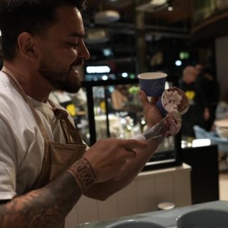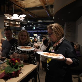 Doch ein besonderes Highlight in diesem Jahreskalender bliebt der Trattoria Abend. Anstatt in kleiner Runde und gemütlicher Atmosphäre bei Karten, die auf 22 Personen begrenzt sind, laden wir beim Trattoria Abend in größerer Runde ein. Wir haben für 70 Personen „Insalata Pollo“, „Pasta Panna Pomodoro di Gamberi“ & „Pizzi Verdura“ serviert. Doch nicht nur das italienische Essen aus der Trattoria und die stimmig ausgewählten Weine „Sgreva Sirmio Lugana„, „Epicuro Rosato“ & „Epicuro Aglianico Puglia“ machen den Abend so besondern. Wie so häufig in unseren Frischecentern setzen wir auch beim Dessert und der musikalischen Begleitung auf Lokalität. Beste Qualität von umme Ecke und eine langjährige Partnerschaft zeichen die Traditionseisdiele aus Essen Frohnhausen „Eis Casal“ und das Cafe & die Kaffeerösterei der „Coffeepirates“ aus.