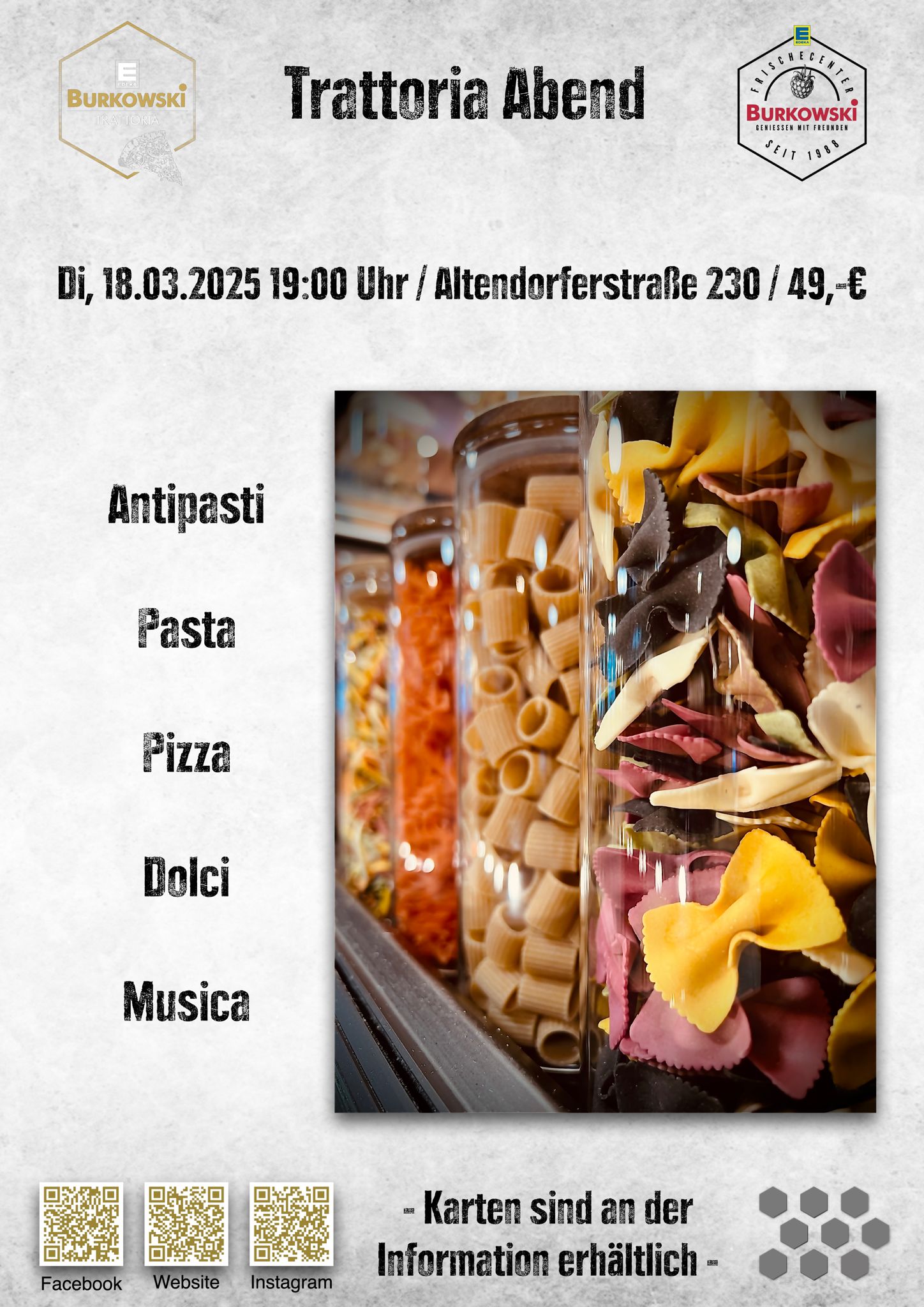 Unsere Weinabende sind mittlerweile eine feste Größe im Kalender. Verschiedene Themen in Kombination mit ausgesuchten Weingütern u. a. „Gourmetabend“, „Fisch trifft Wein“, „Käse trifft Wein“, „Trattoria Abend“. In den vergangenen Jahren haben wir immer wieder wechselnde Weinabende in unser Format gebracht. Neben den Tipps & Tricks vom Profi und dem gucken, riechen, schmecken der unterschiedlichen Weine gibt es immer die passenden Köstlichkeiten dazu.